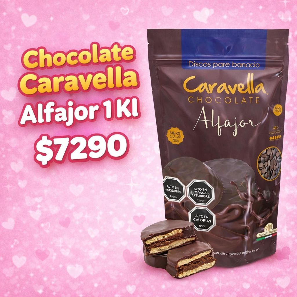 Cobertura Chocolate Alfajor Semi Amargo NEGRO 1 Kilo Caravella